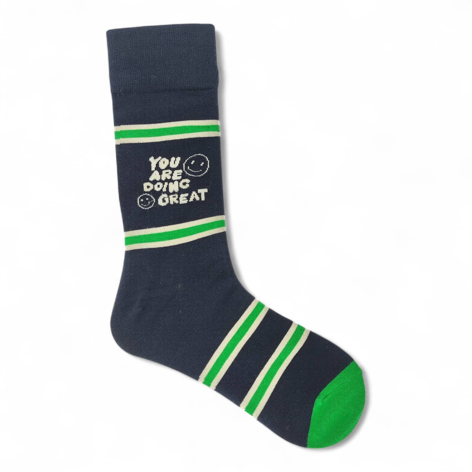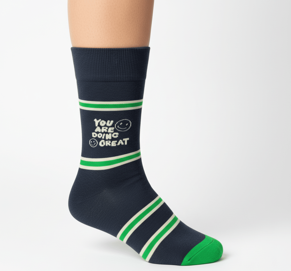 Estos calcetines, hechos para almas aventureras y con ganas de comerse el mundo como tú, reflejan tu energía y tu actitud audaz. Con un mensaje que te recuerda que «You Are Doing Great», estos calcetines te dan ese empujoncito que necesitas para seguir adelante. El verde vibrante evoca vitalidad y crecimiento, mientras que el Negra agrega un toque clásico y elegante.