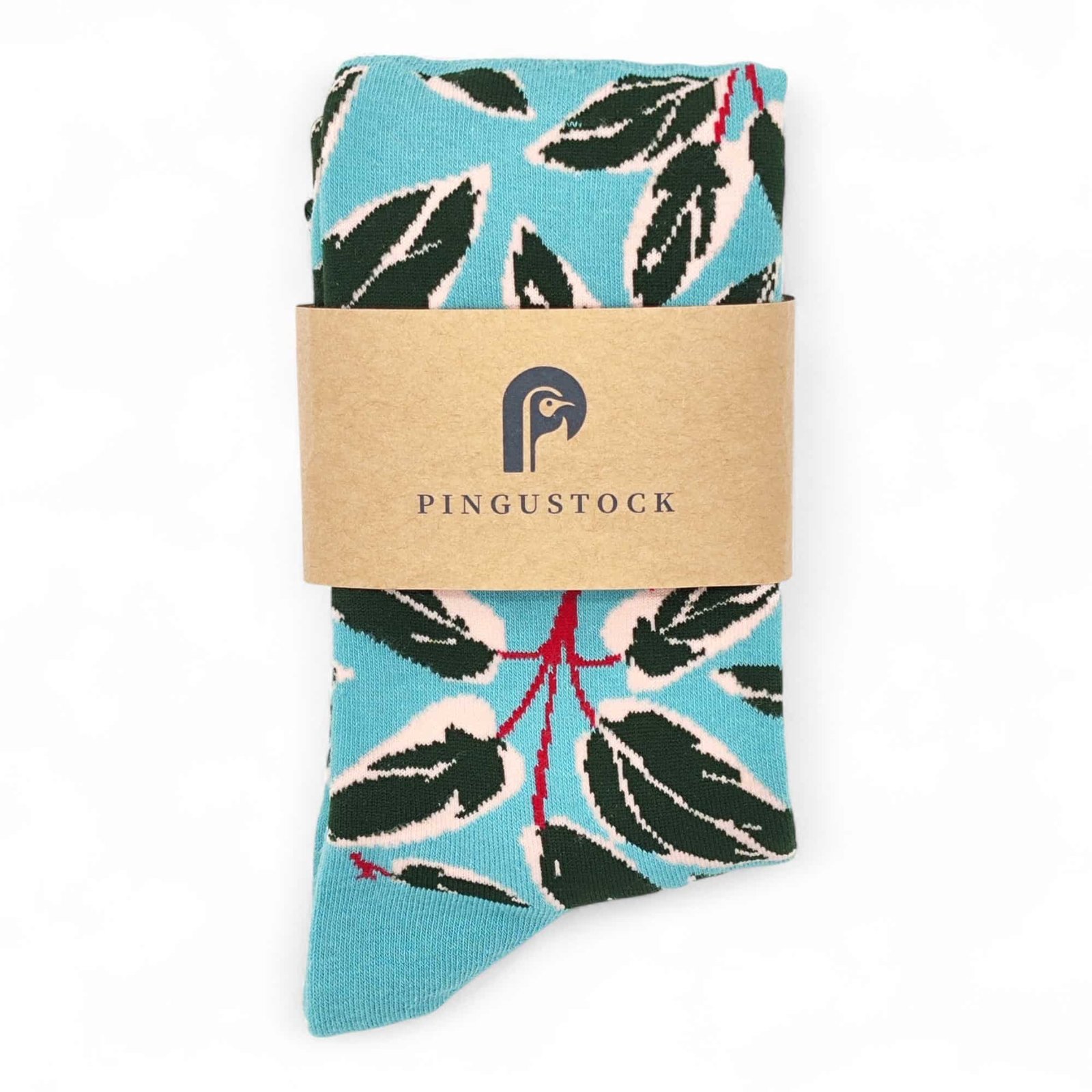 Su diseño único en azul aguamarina con hojas negras y tallos rojos añade un toque distintivo a tu look, permitiéndote expresar tu personalidad a través de un pequeño detalle.