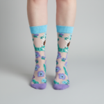 Los Calcetines Botanic Pup combinan encanto y frescura en un diseño tipo media con un sutil toque transparente que aporta ligereza y elegancia. Sus flores en tonos morados y verdes rodean la figura de un adorable perrito ilustrado, creando un estilo artÃstico y vibrante.