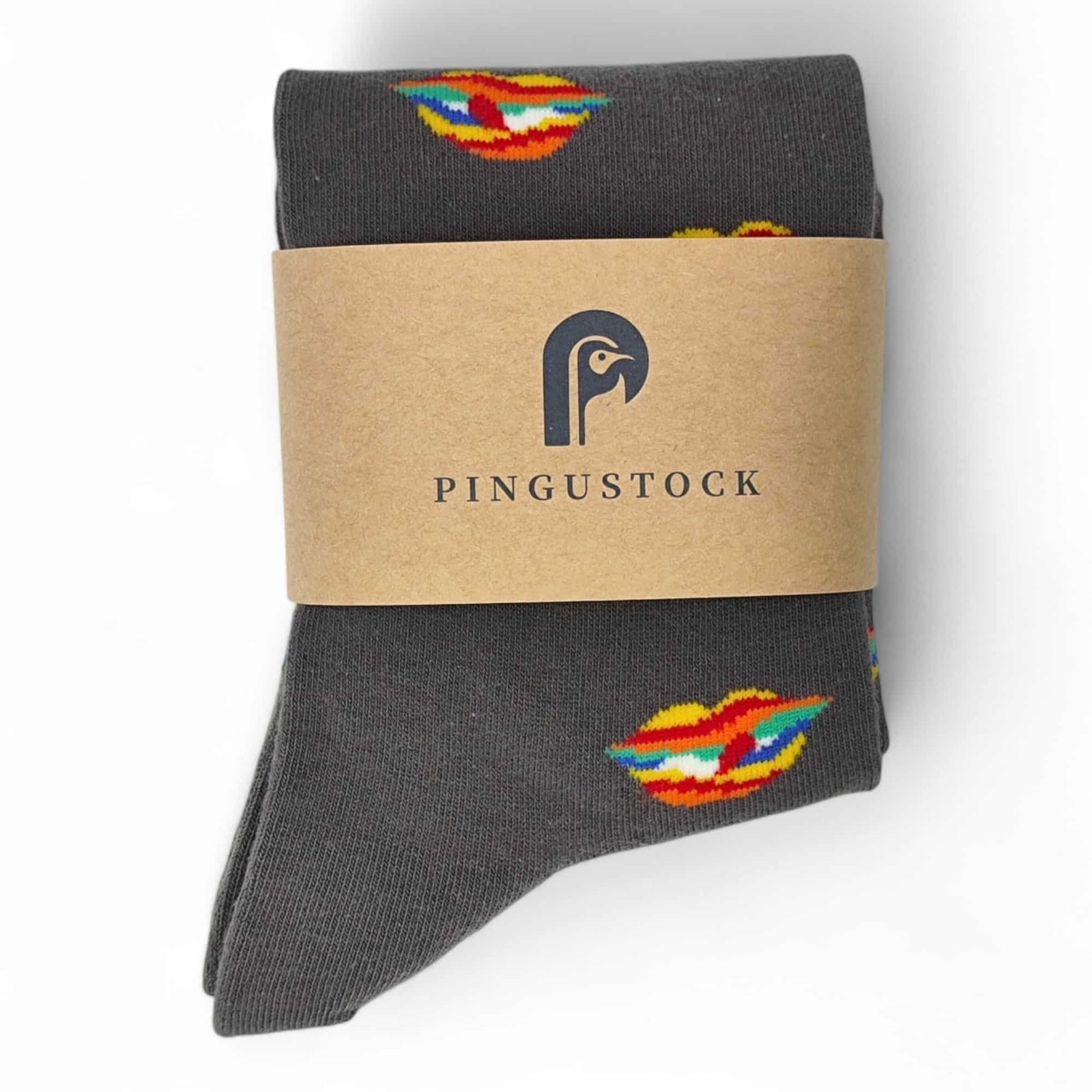Dale un beso de color a tu estilo! Los calcetines «Striped Lips» presentan un diseño único con labios estilizados rellenos de vibrantes rayas multicolores, dispersos sobre un fondo gris oscuro. Un toque artístico y audaz para tus pies. Confeccionados con materiales de muy buena calidad, son cómodos, suaves y transpirables, perfectos para un look original y confortable.