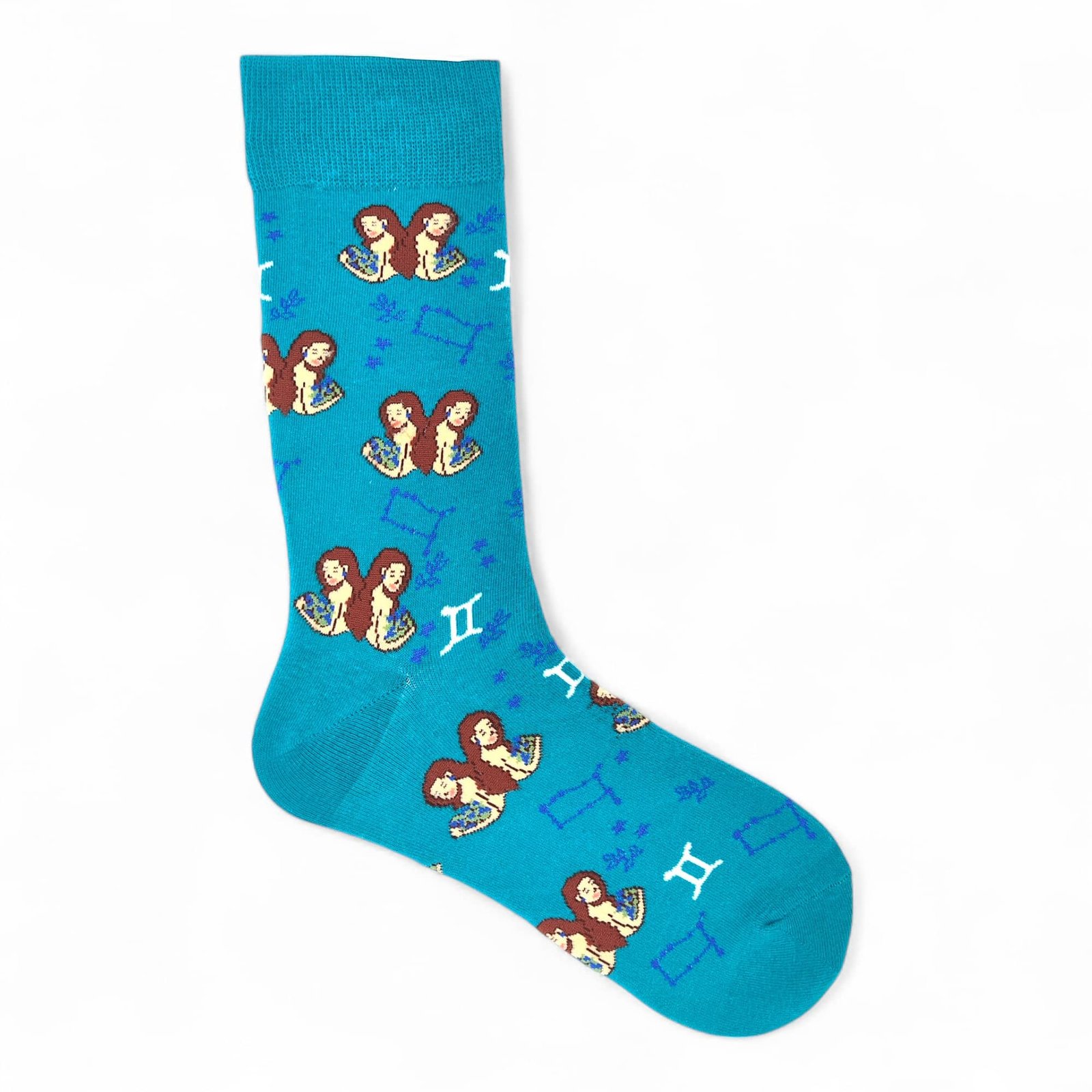 ¿Curioso y siempre en movimiento, Géminis? Estos calcetines están diseñados para tu versatilidad y encanto. Su diseño ágil y lleno de vida, con un vibrante azul turquesa que evoca tu mente despierta y el brillo inteligente de tu signo y constelación, te hará sentir conectado. IncreÃblemente cómodos y de alta calidad, te ofrecen una pisada ligera para explorar el mundo con total libertad.