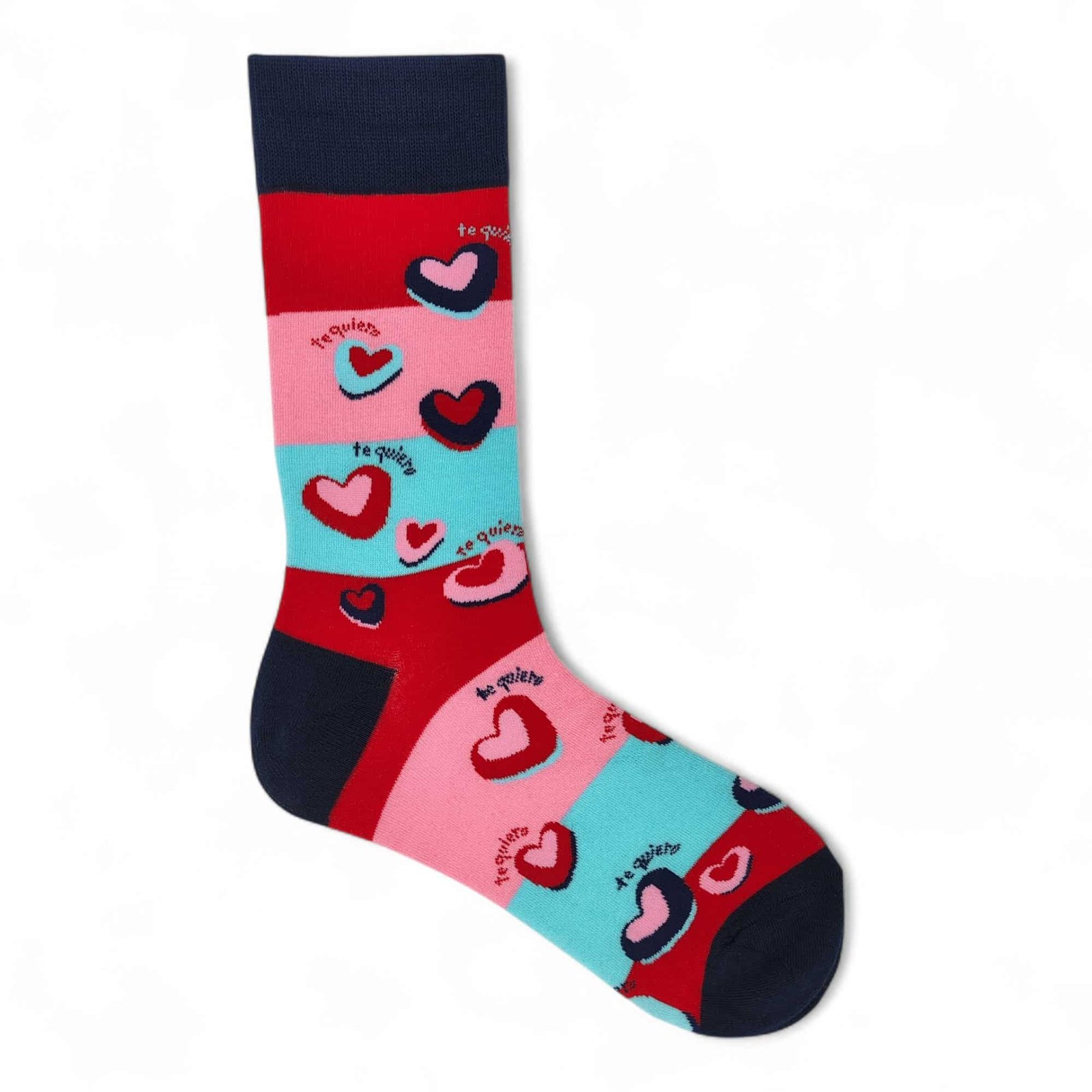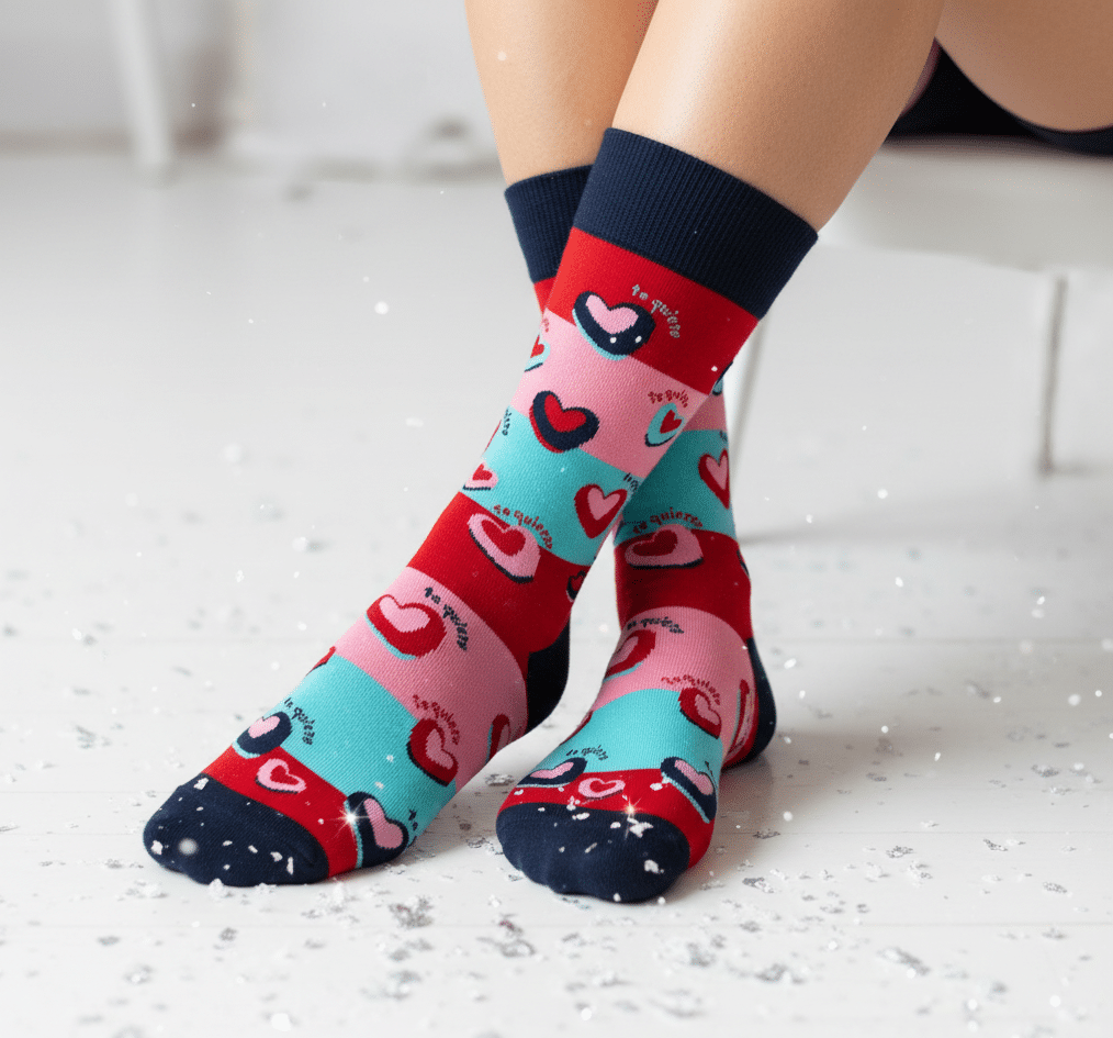 El toque más dulce y tierno para tus pies! Los calcetines «Gominola» son una explosión de color y afecto, con vibrantes franjas, adorables corazones y el cálido mensaje de «te quiero». Su diseño evoca la dulzura de una chucherÃa y la alegrÃa del cariño.