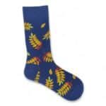 Los calcetines Serenidad Cálida son una fusión de tranquilidad y energía, inspirados en la serenidad de un cielo azul y la calidez vibrante de las hojas otoñales. El diseño original combina un fondo azul que evoca paz con hojas en tonos naranjas, amarillos y toques de rojo, creando un contraste armonioso y lleno de estilo.