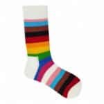 ¿Listo para un chute de color? Con estos calcetines, tus pies se llenarán de energía con este diseño de rayas vibrantes sobre blanco.