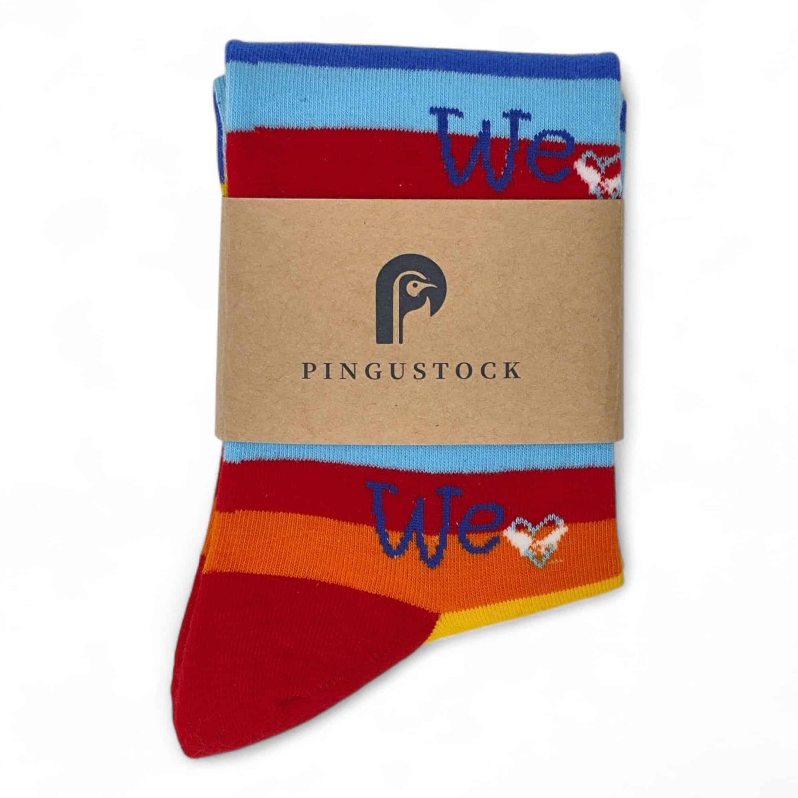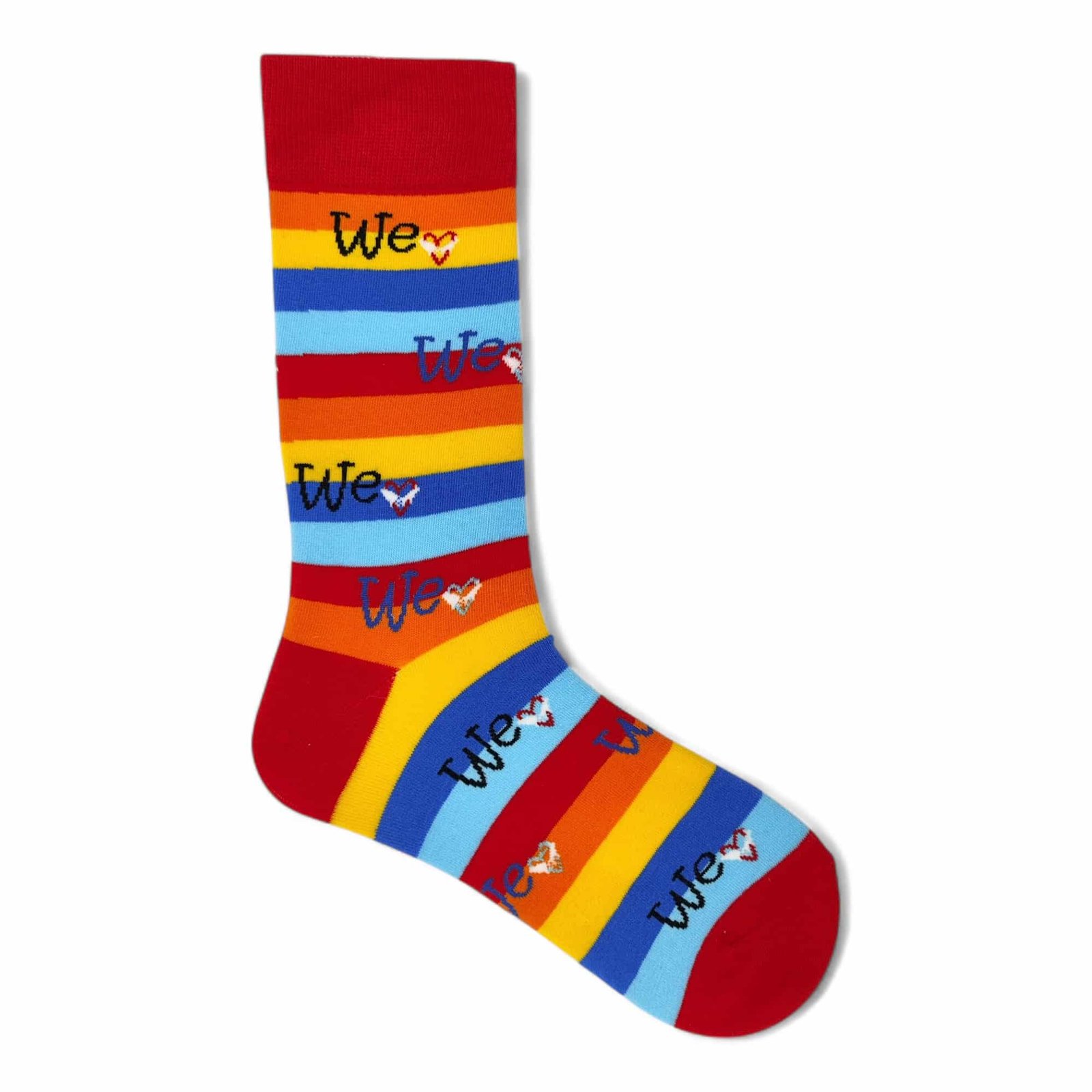 ¡Celebra el amor en cada pisada con un mensaje que lo dice todo! Los calcetines «Nosotros Amamos» son una declaración vibrante de conexión y afecto, con sus alegres rayas de colores y el mensaje repetido «We ❤️» que envuelve tus pies. Su diseño irradia un espíritu de unión y cariño, ¡perfecto para compartir y sentir!